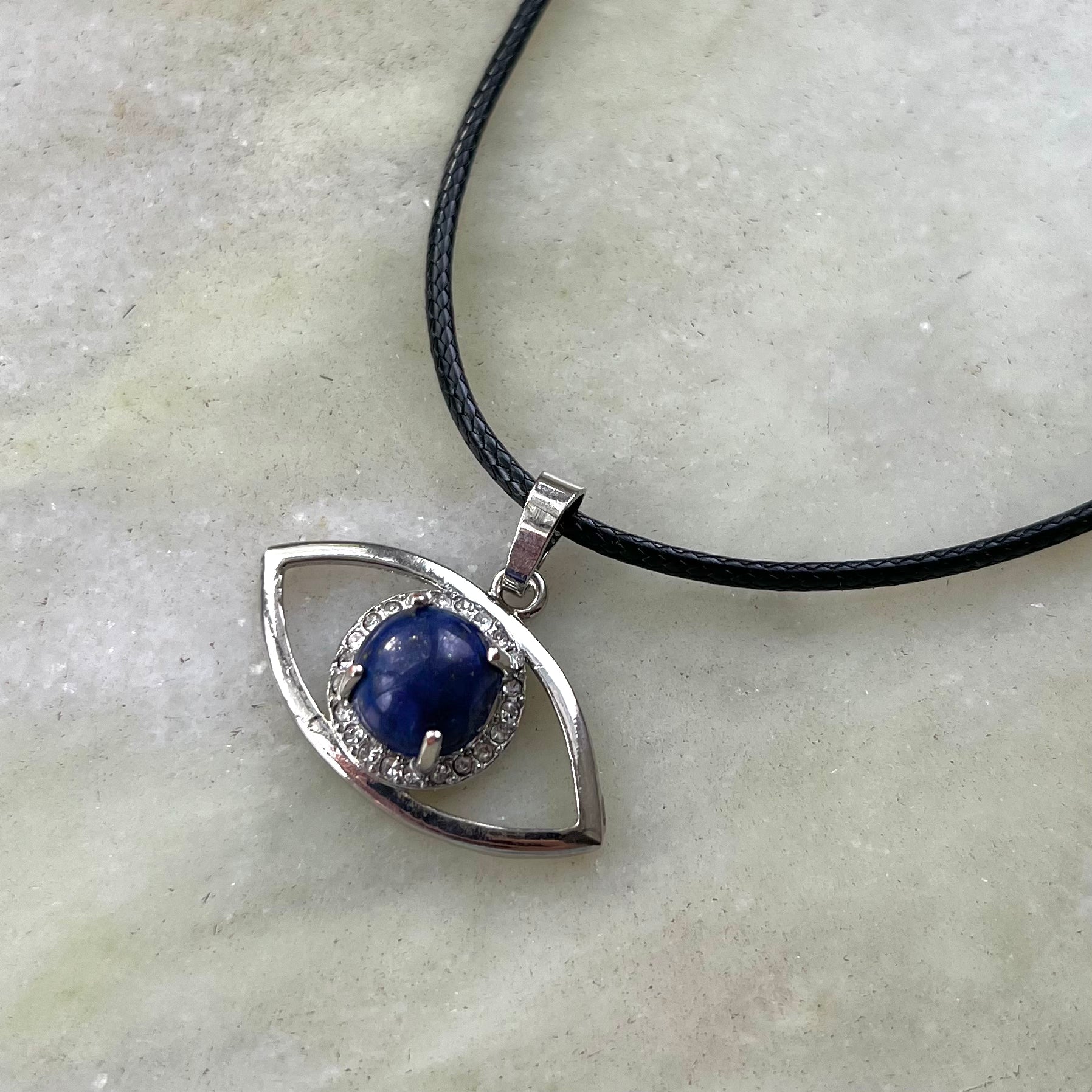 Crystal: Blue Lapis Crystal Evil Eye Pendant Chain
