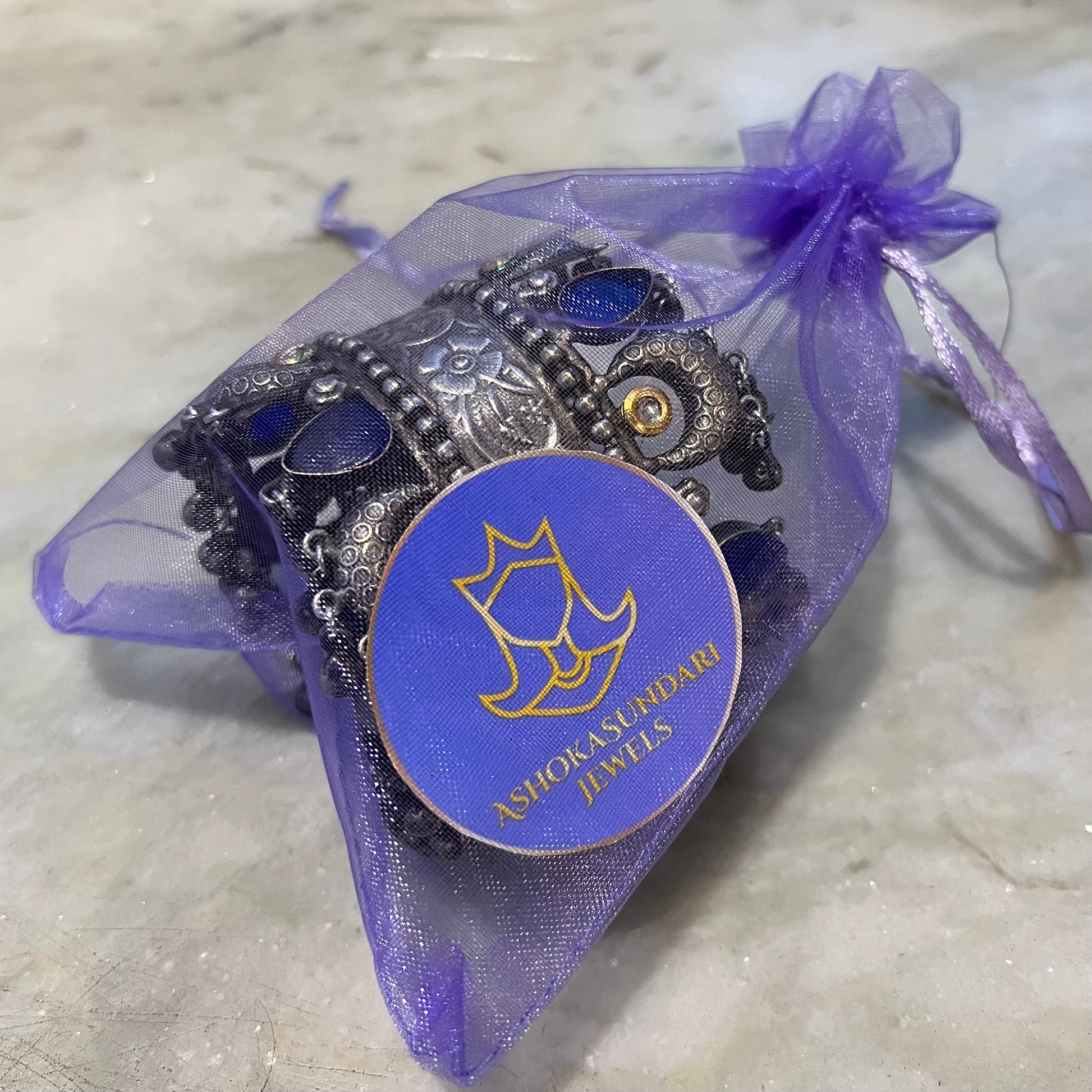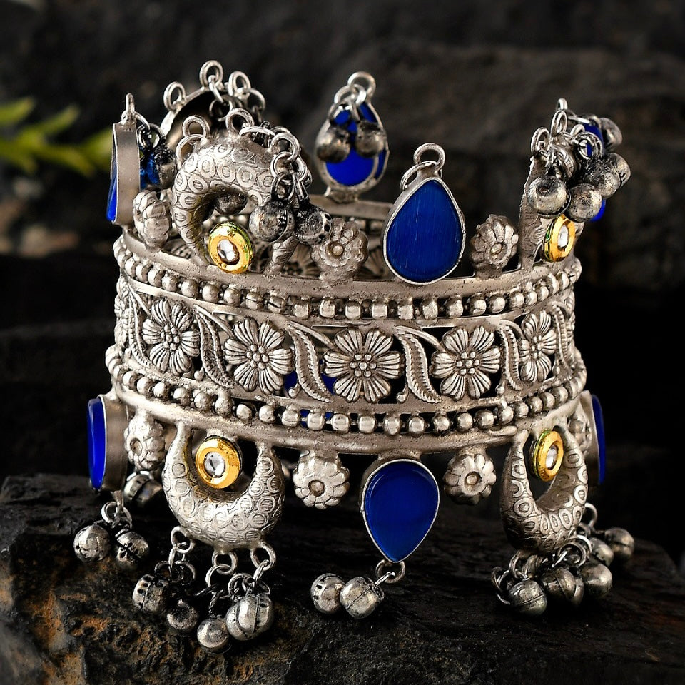 Melina Warrior Silver Antique Statement Bracelet (Blue)
