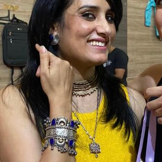 Unveil the warrior within you with this edgy statement wear antique single hand cuff. Accessorise it as an armlet (baaju band) or hand cuff bracelet with your ripped denims and long flowly fashionable tube tops!