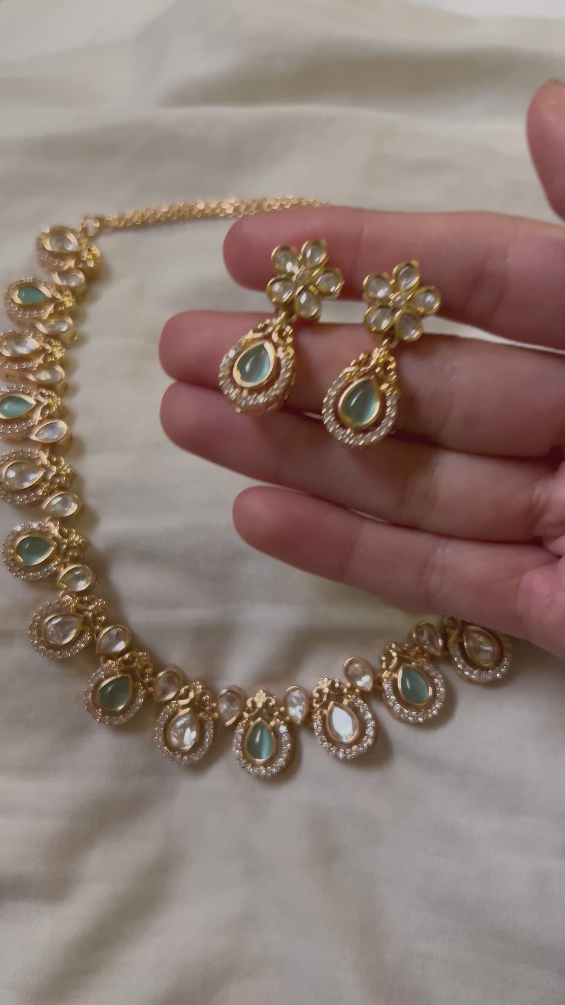 Mint Green Rose Gold Crystal Moissanite Polki Choker Set