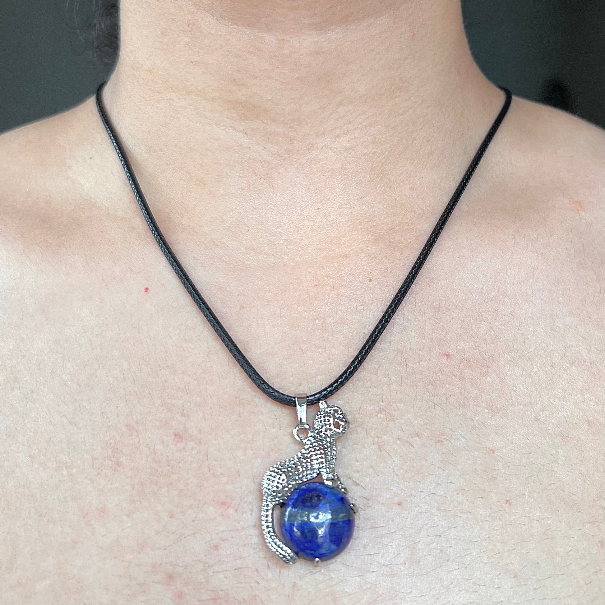 Crystal: Blue Lapis Lazuli Crystal Panther Puma Cheetah Pendant Chain Necklace