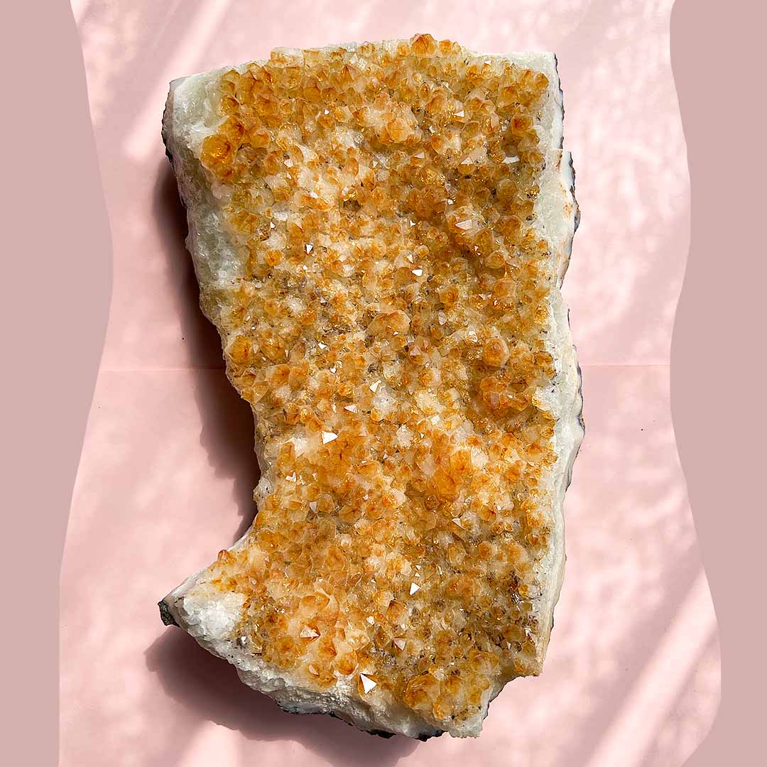 This Natural Raw Citrine Crystal Cluster is a magnificent piece that oozes positivity into every cell of your body and in your space. It's strongly associated with the sacral chakra and works on your desires for financial abundance and prosperity. Which is why you will spot this very often at a businessman, artist or banker's workspace or house!