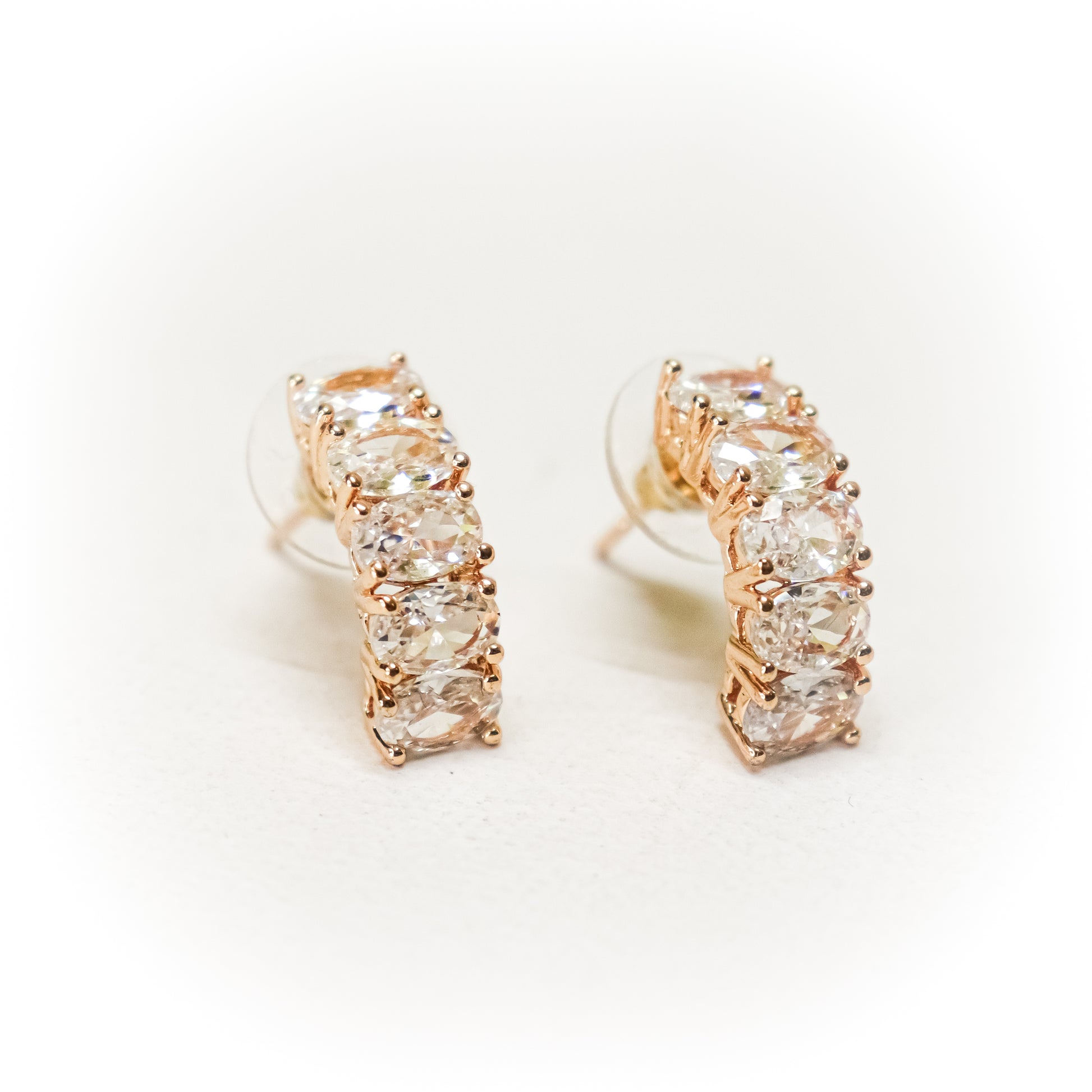 Elegant daily wear comfortable minimal stud zircon rhinestone earrings for woman. Easy to wear before you head out for office or a meeting. These Stud top earrings made out of a strong alloy metal studded with american diamond AD rose gold stones is sure to make a flash from far away and uplift your everyday look.